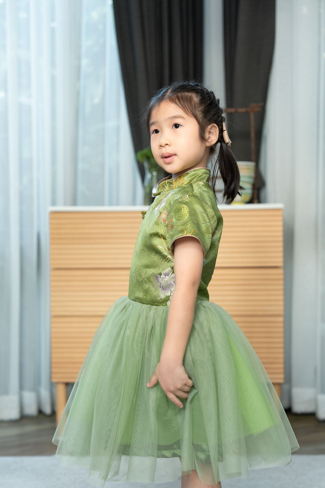 กี่เพ้า ช่วงบนไหมจีน กระโปรง Tutu