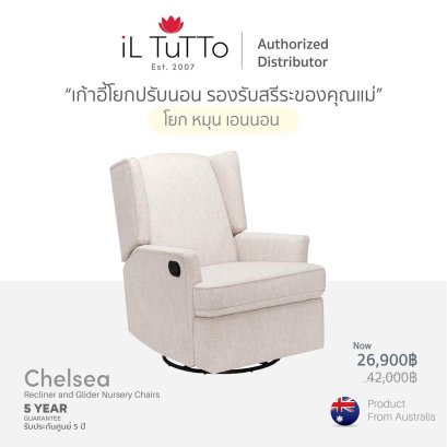 Chelsea Recliner and Glider Nursery Chairs ปรับเอนด้วยคันโยก หมุนรอบทิศ 360 องศา ปรับเอนได้สูงสุด 160 องศา