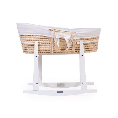 Childhome - ตะกร้านอนเด็กพร้อมขาโยก Moses Basket with White Rocking Stand (Jersey Off-white)