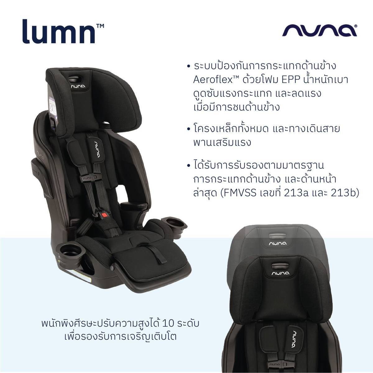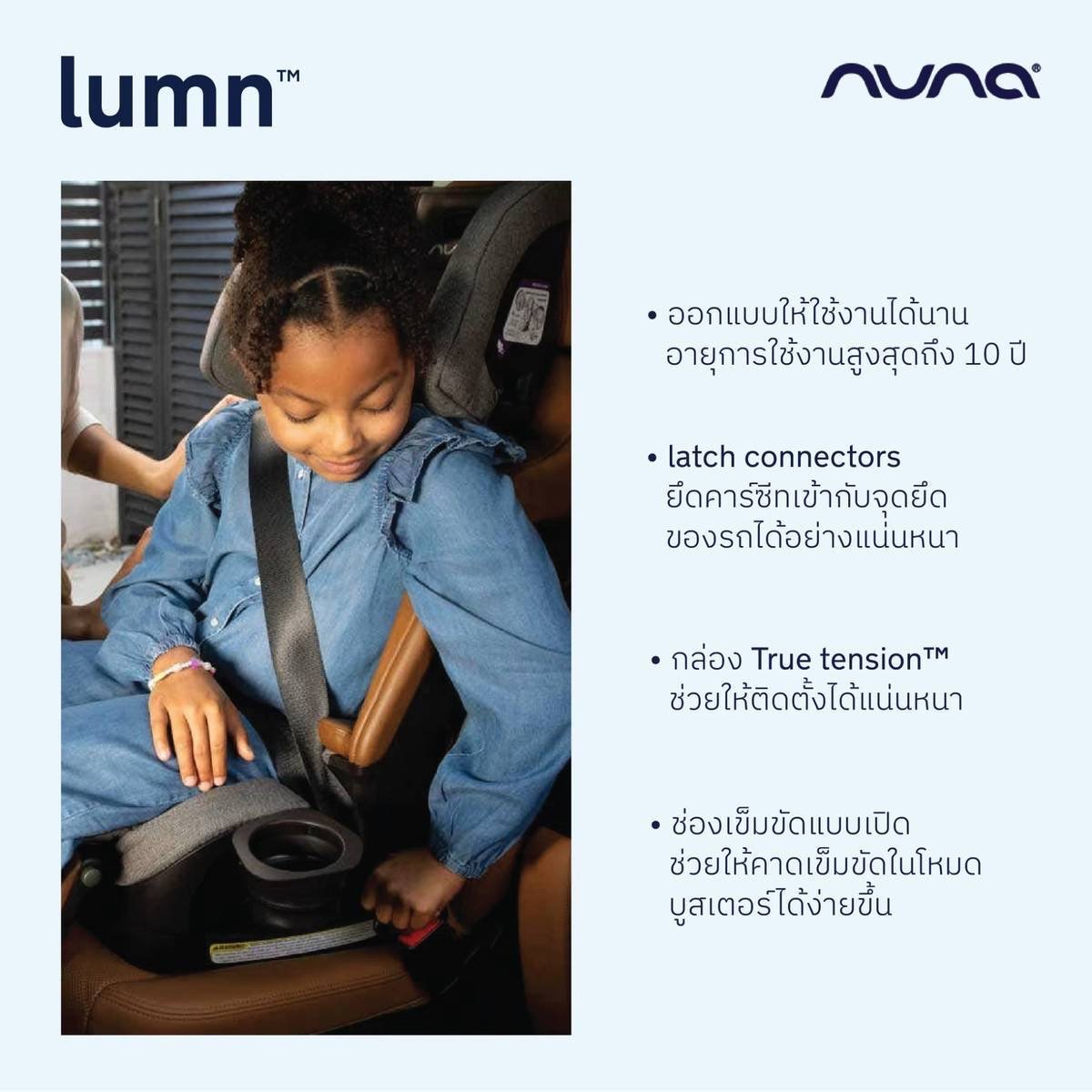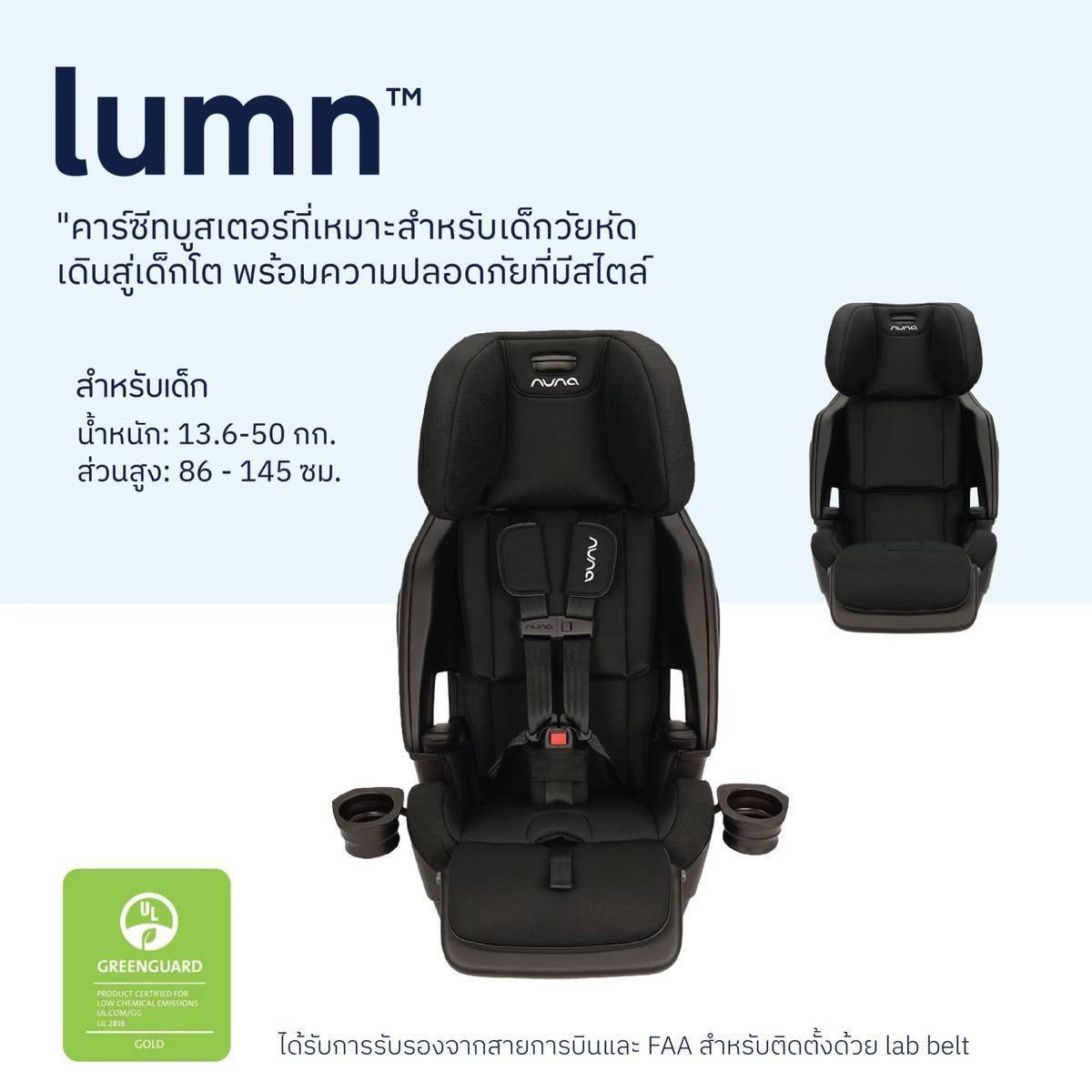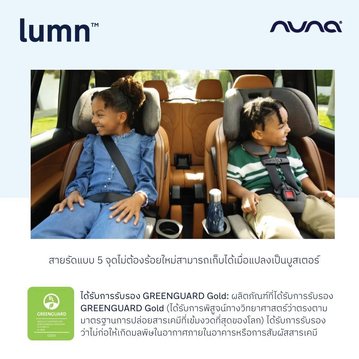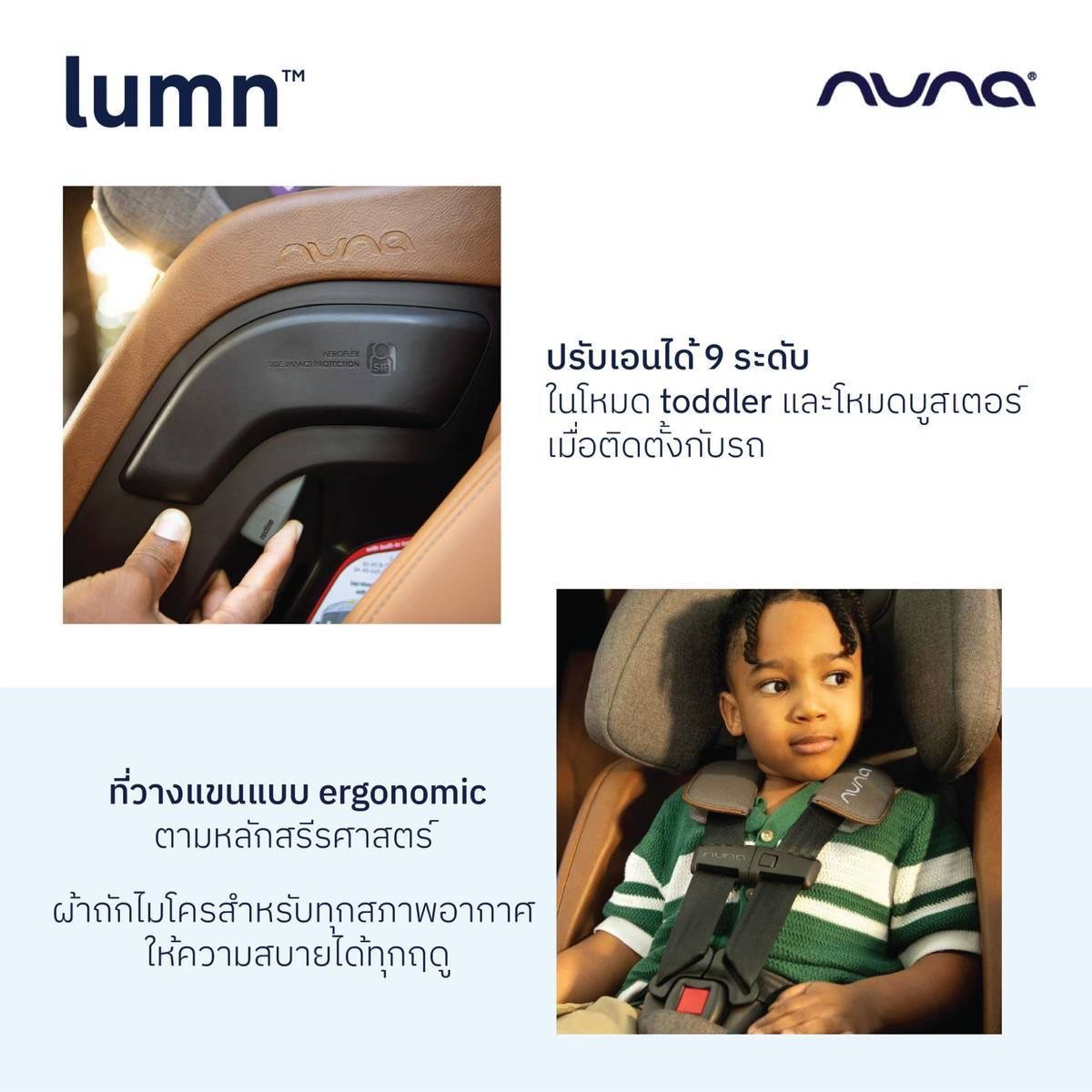 บอกลาอาการกลอกตาและคำพูดว่า "โตเกินกว่าจะใช้อันนี้แล้ว" และสวัสดีกับเบาะนั่งรถยนต์ที่เข้าใจภาษาของลูกคุณ NUNA The LUMN คือเบาะนั่งหันหน้าไปข้างหน้าที่ปรับเปลี่ยนจากเบาะล็อกสายรัดเป็นเบาะบูสเตอร์ที่ช่วยให้ลูกคุณเติบโตได้อย่างมั่นใจ พร้อมสไตล์เท่แบบเด็กโต