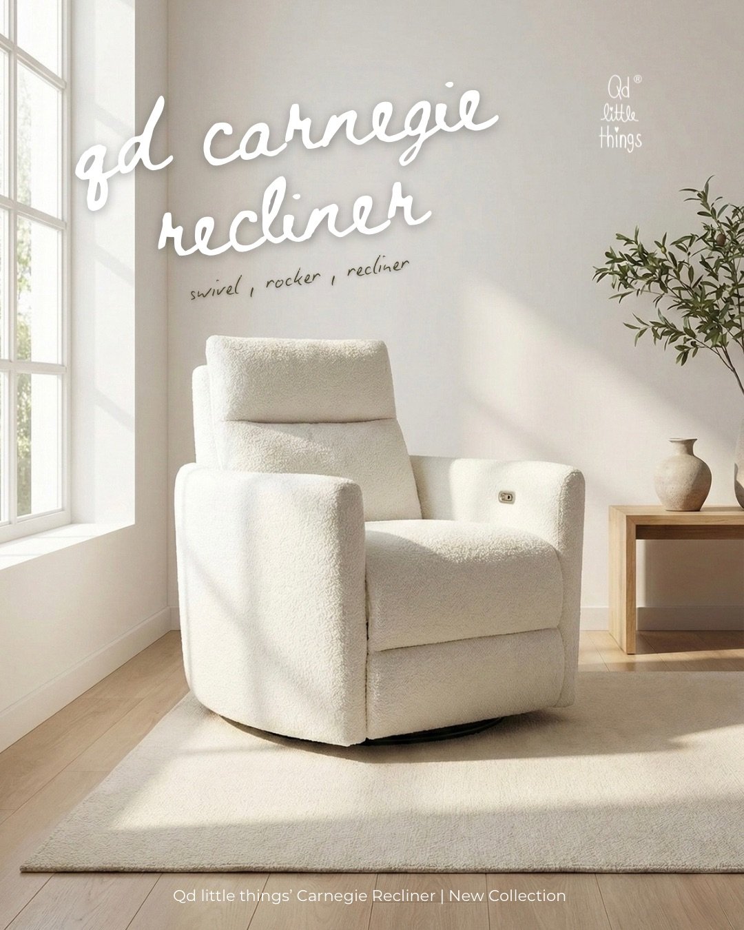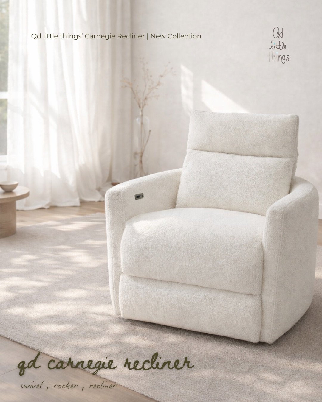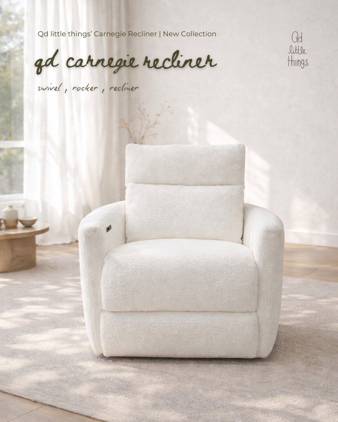 New Arrival : เก้าอี้ปรับเอนไฟฟ้า โยก และหมุนได้ เฟอร์นิเจอร์ชิ้นใหม่ล่าสุดจาก Qd little things สำหรับคุณแม่ให้นมและทุกคนในครอบครัวพักผ่อน ดูทีวี อ่านหนังสือ