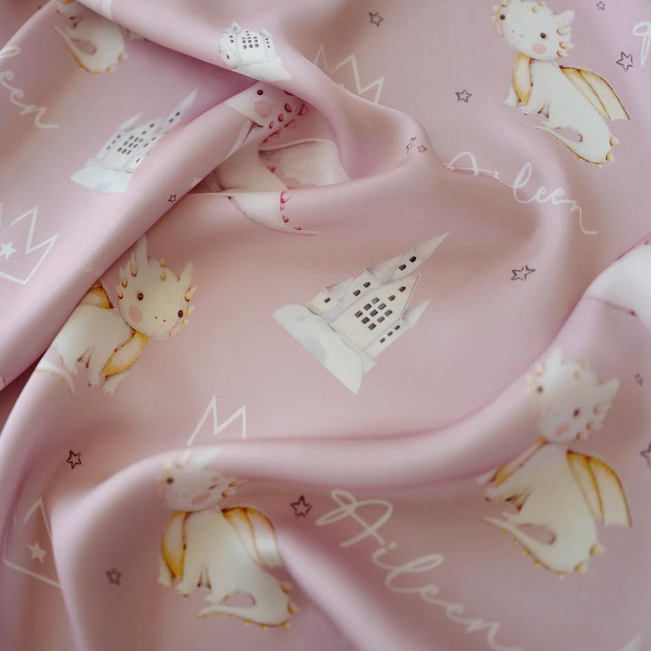 Available in “Qd Silk Satin” fabric, printed name personalization 350.-